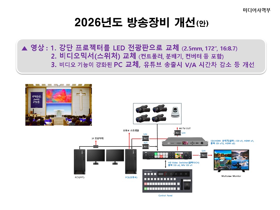 25.12.14 공동의회에서 문의한 내년 본당 방송실 관련 개선방안에 대해 소개 드립니다 (본 자료는 25년 11월 제직회에서 발표한 자료 입니다)