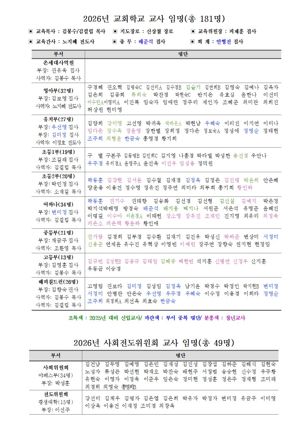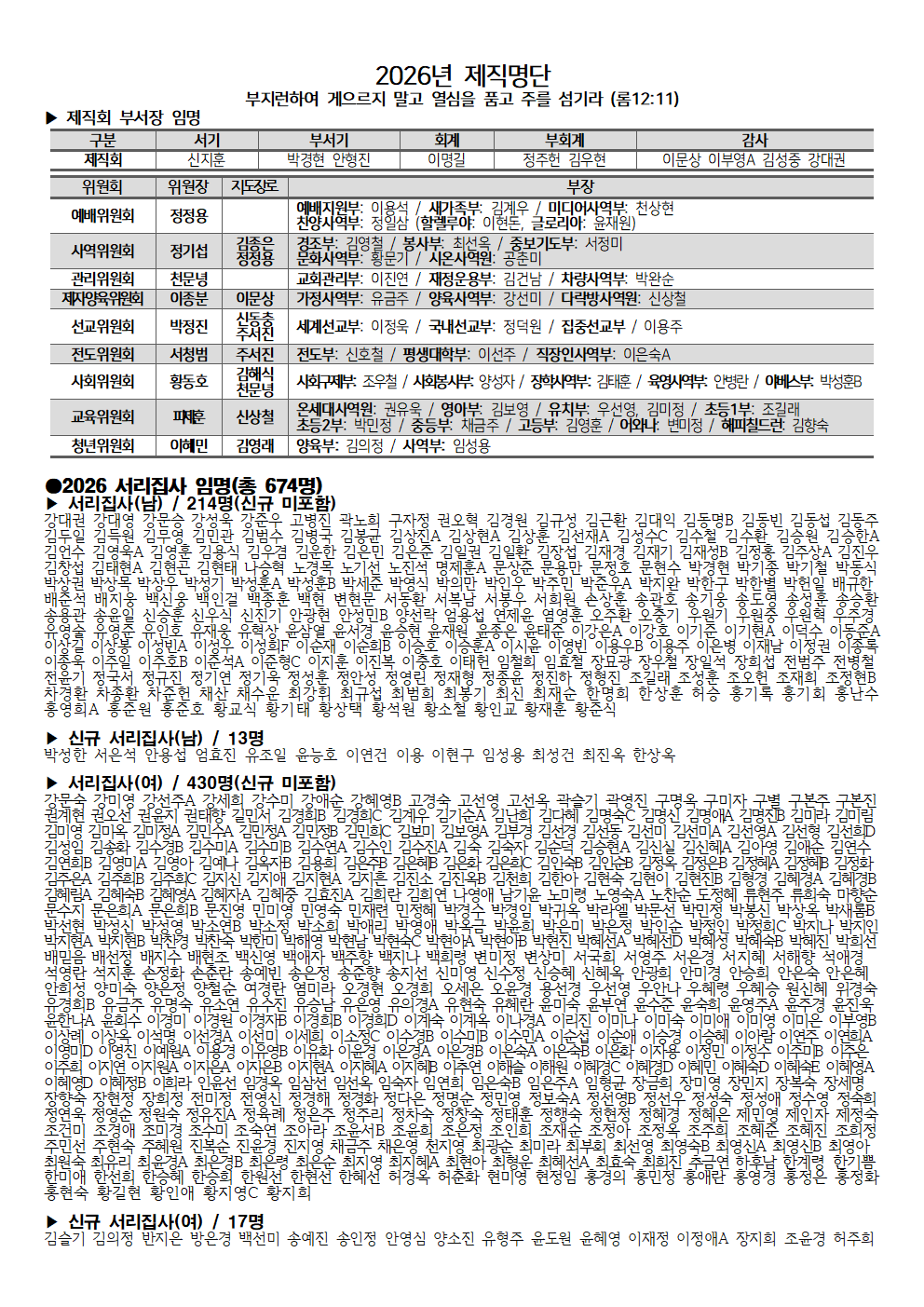 2026년 제직 명단